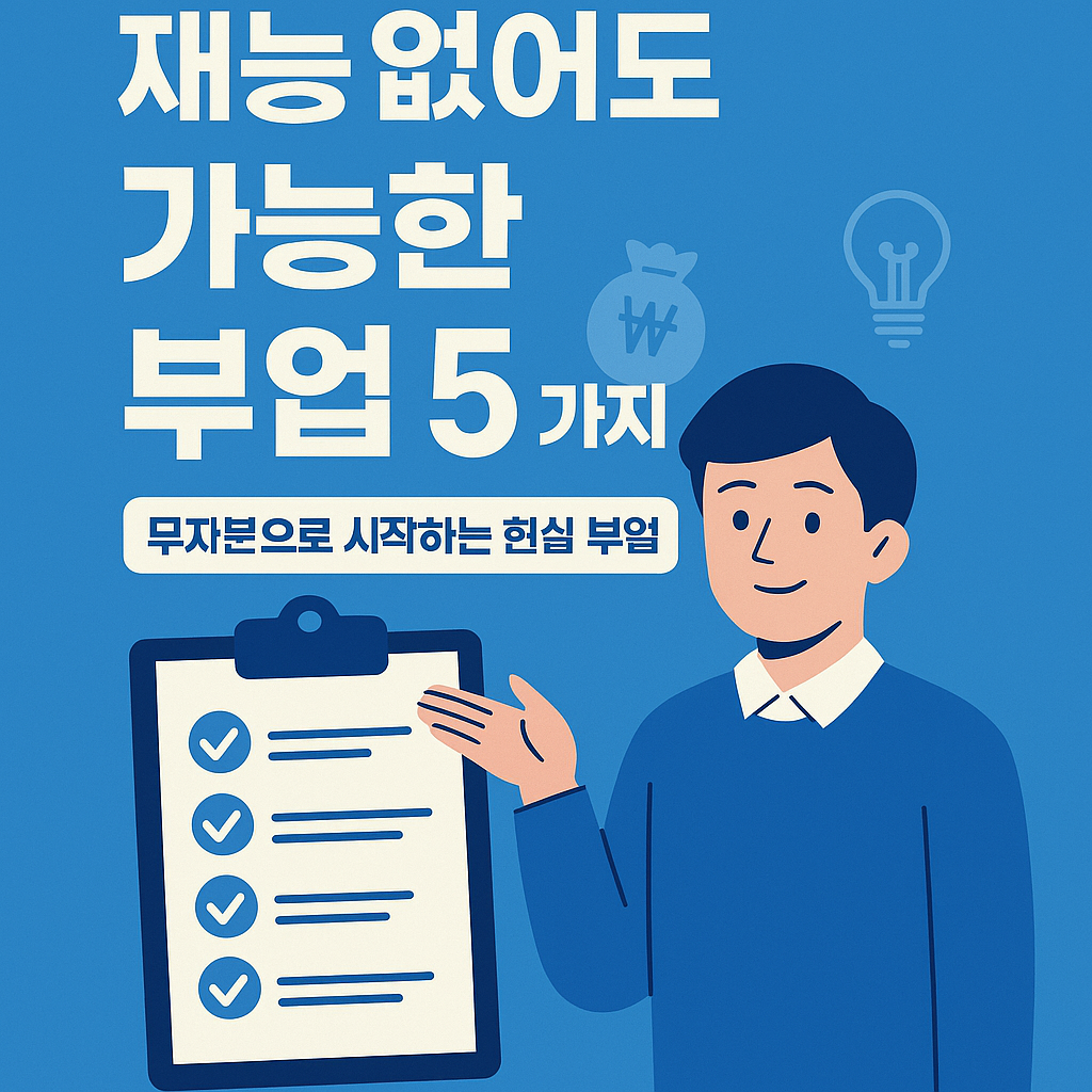 재능이 없어도 가능한 현실 부업 5가지를 정리한 실전 요약본입니다.